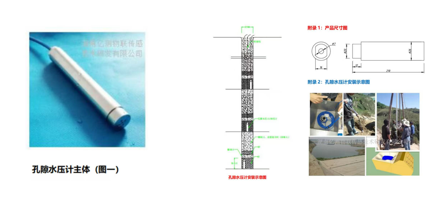 产品结构:孔隙水压计/渗压计本体、通讯数据线等。