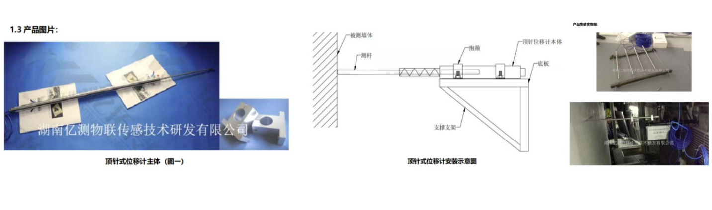 在固定点与被测结构物之间用带有弹簧的顶针位移计,当被测点发生臌胀或收缩变形时,位移计会发生相应的位移变化。
