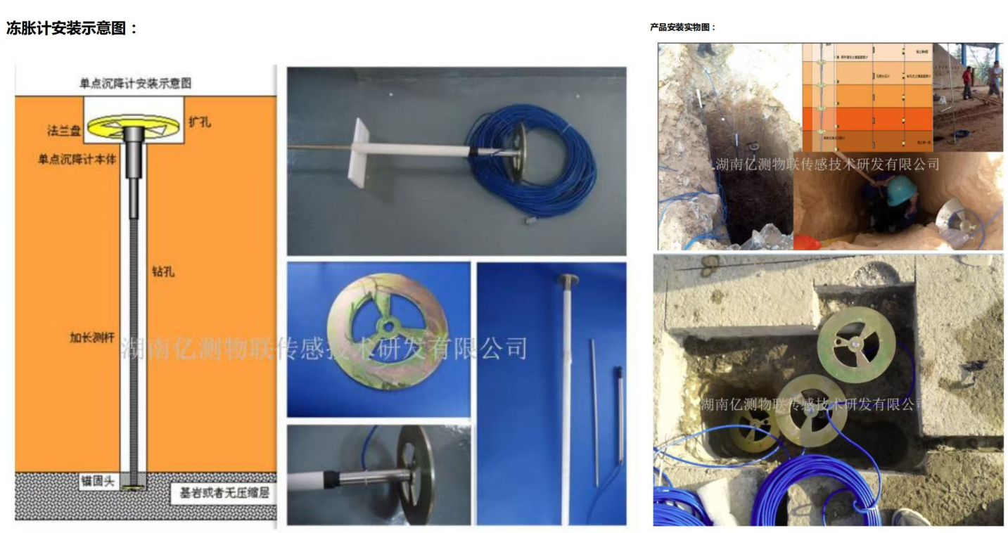 测量方式:钻孔埋入土体,测量锚头与冻胀\冻融板的相对垂直位移变化。