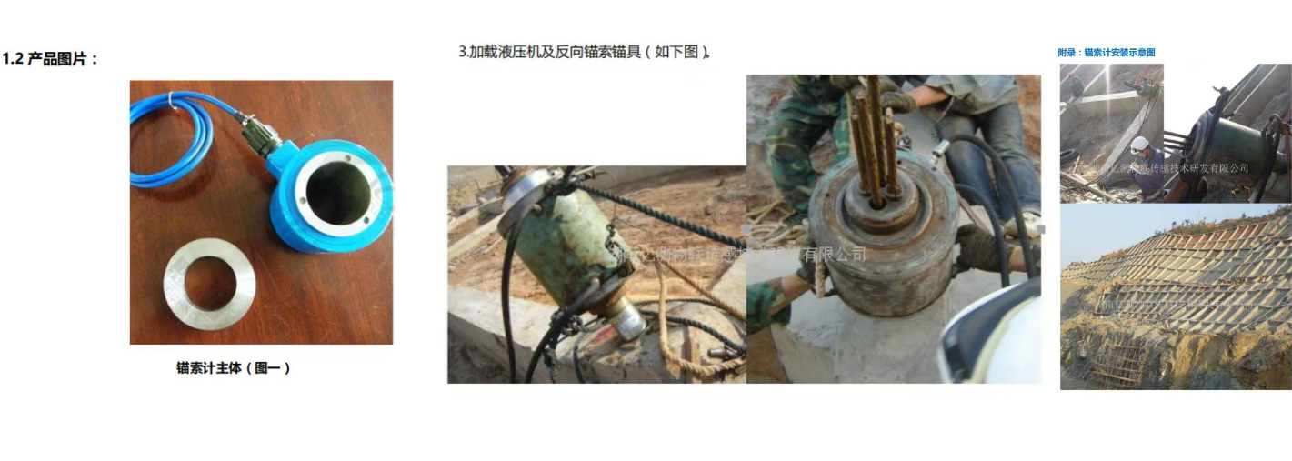 安装原理:预应力张拉锚索前,将锚索计通过锚具固定在锚索端头。