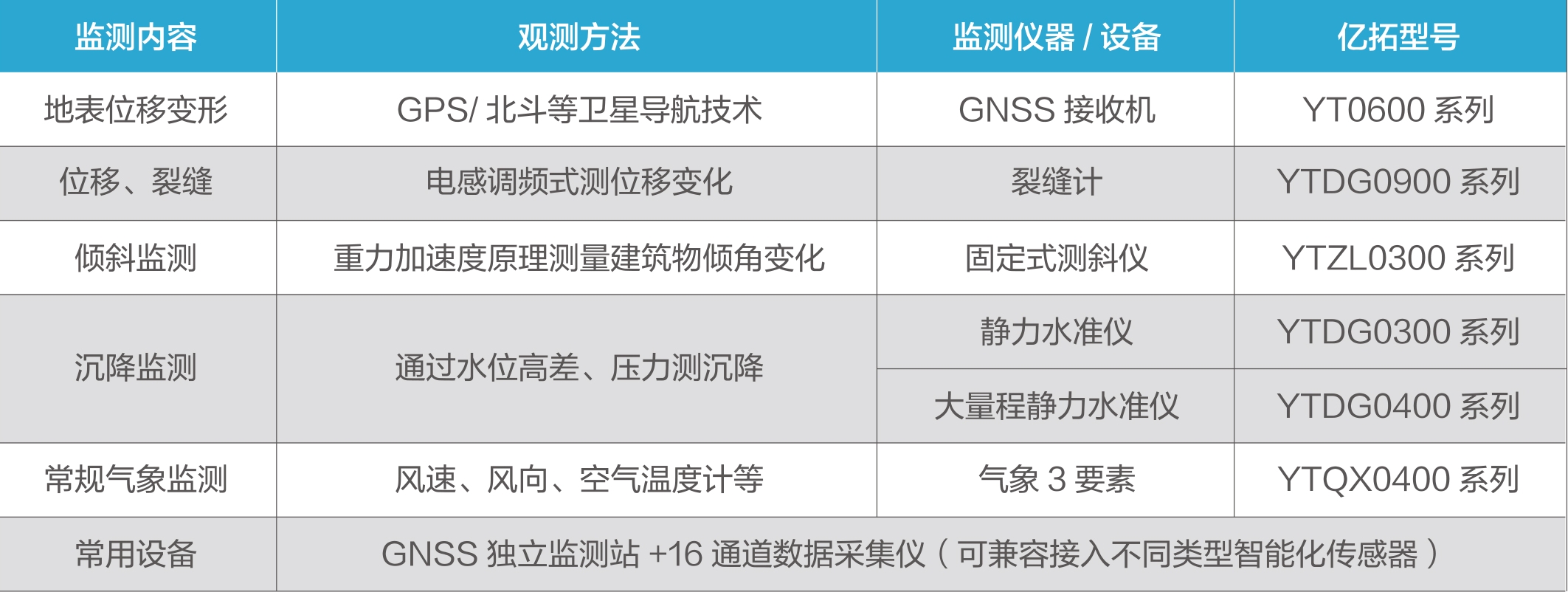 危房与文物建筑重点布设裂缝计(YT-FL-400 系列),监测墙体、梁柱裂缝宽度(量程 0-10mm,分辨率 0.01mm)及发展速率;高层建筑在钢构件节点安装光纤应变计(YT-GX-300 系列),测量应力变化(量程 ±2000με,精度 ±1με),评估结构疲劳状态。