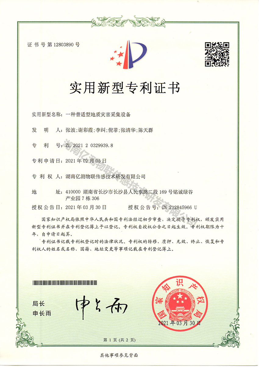 一种三轴加速度自动化监测设备-实用新型专利证书